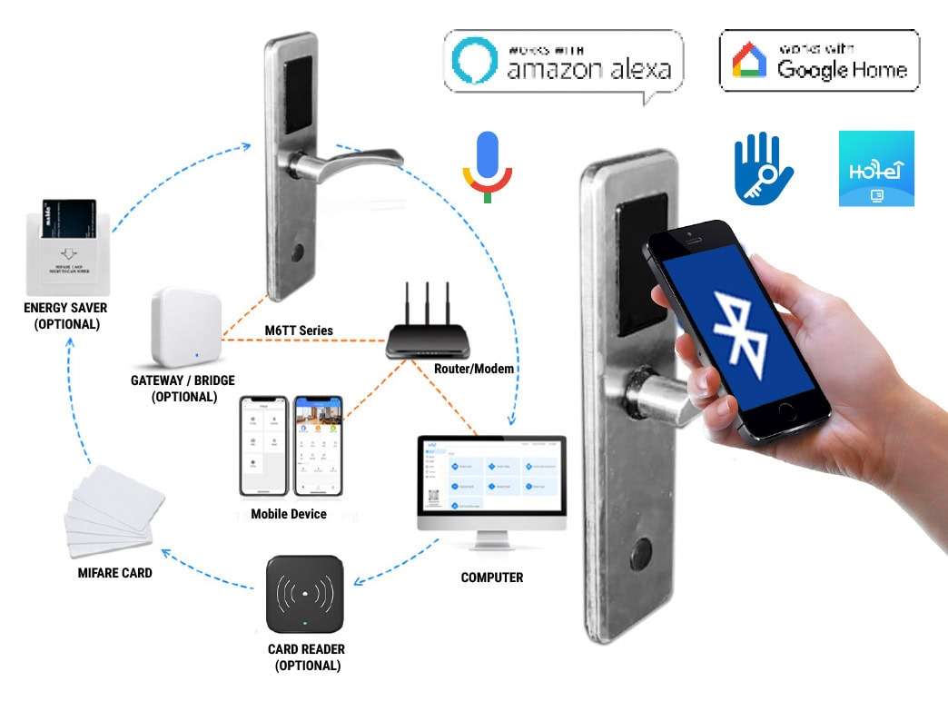 - Bluetooth, Kart, gateway ile kilit uzaktan (resepsiyon) yönetilebilir ve açılabilir.